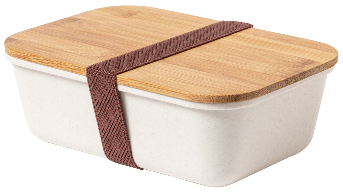Box na jídlo z PP plastu s bambusovým víkem a elastickým páskem. 1000 ml.