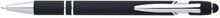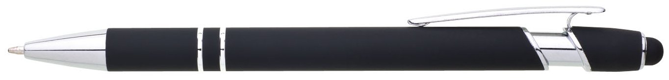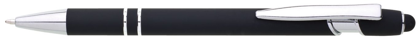Propiska s touch koncem, měkkým pogumovaným soft povrchem v černé barvě a stříbrnými doplňky včetně dvou ozdobných kroužků. (NATIO)