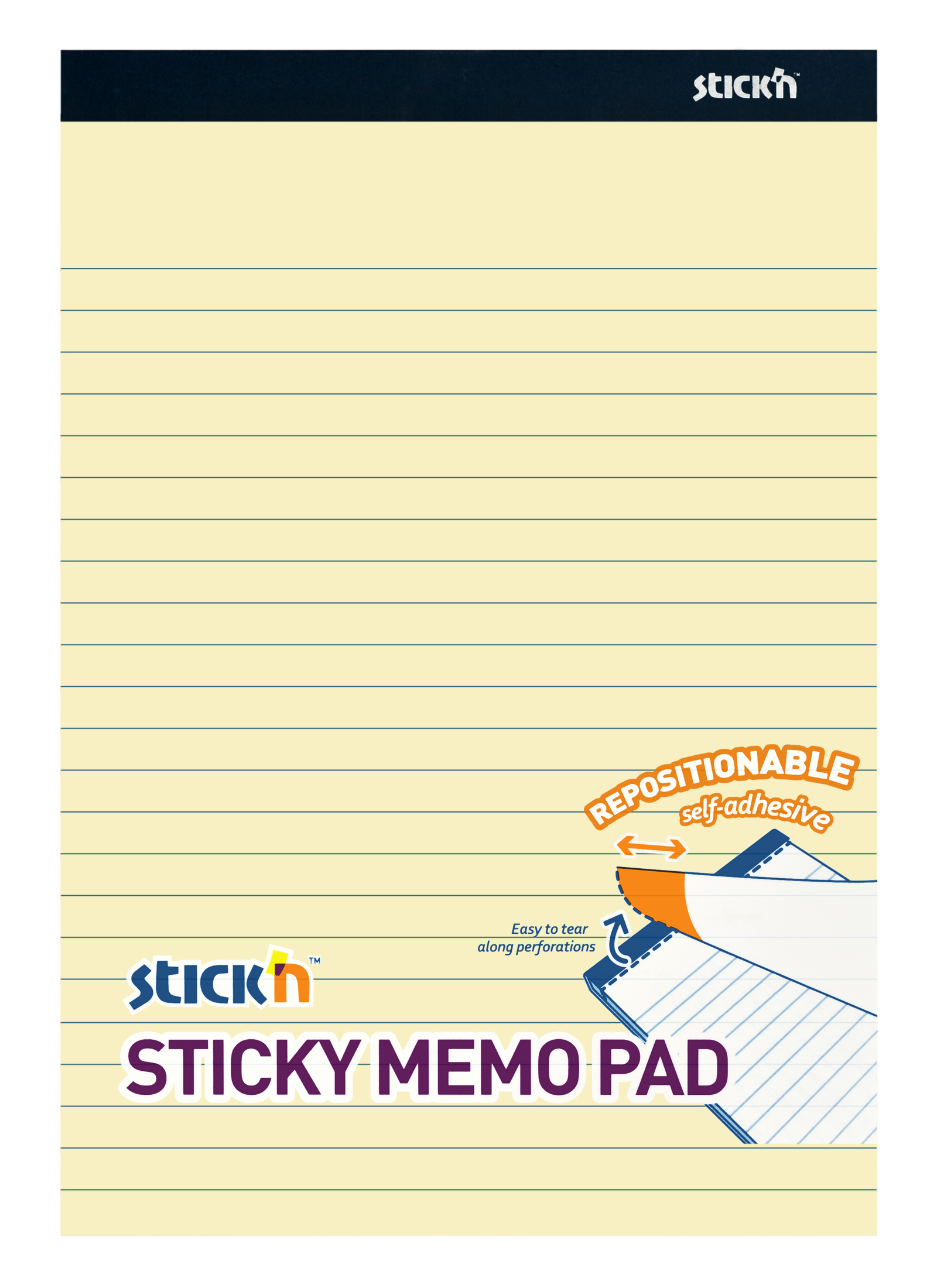 Samolepicí blok Stick'n pastelově žlutý linkovaný, 254 x 178 mm