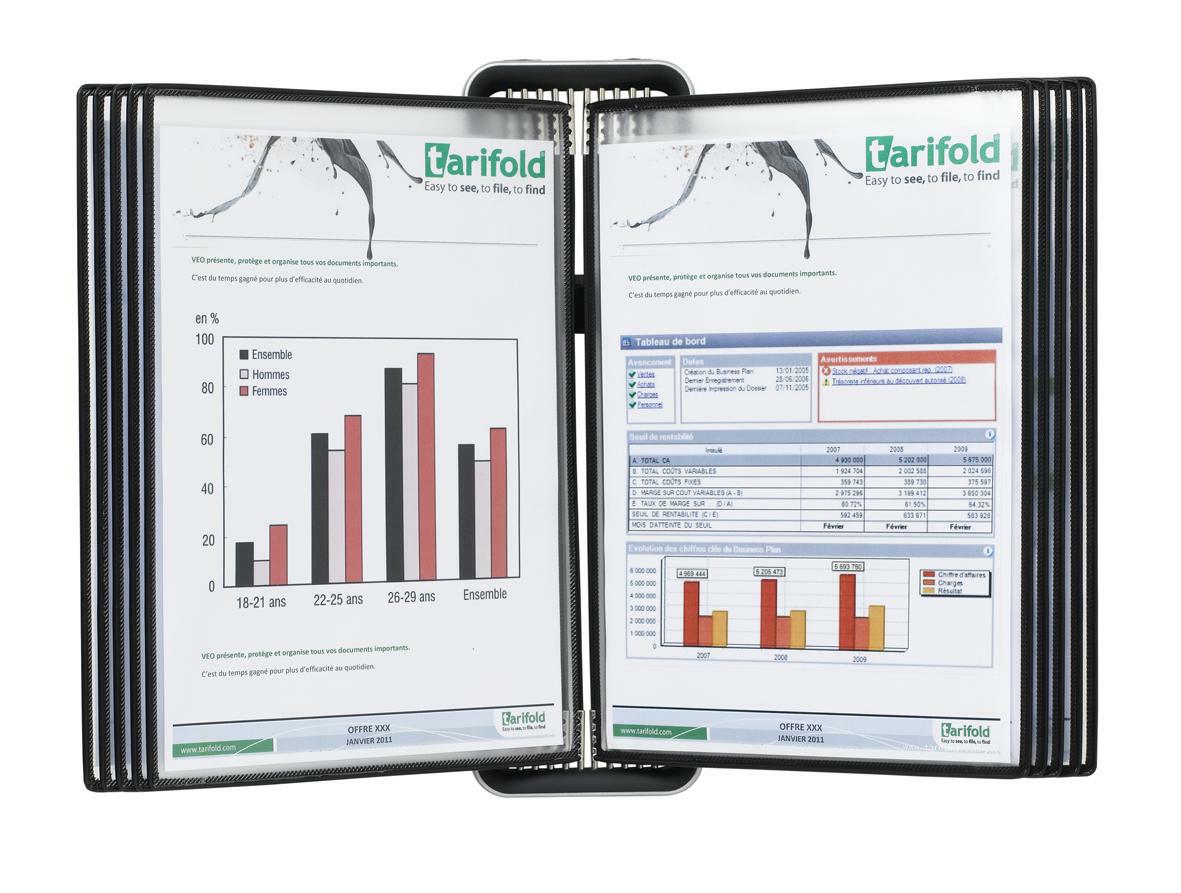 PREZENTAČNÍ NÁSTĚNNÝ DRŽÁK TARIFOLD VEO, s 10 kapsami, černý