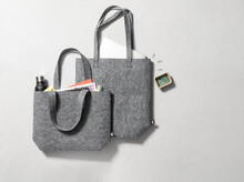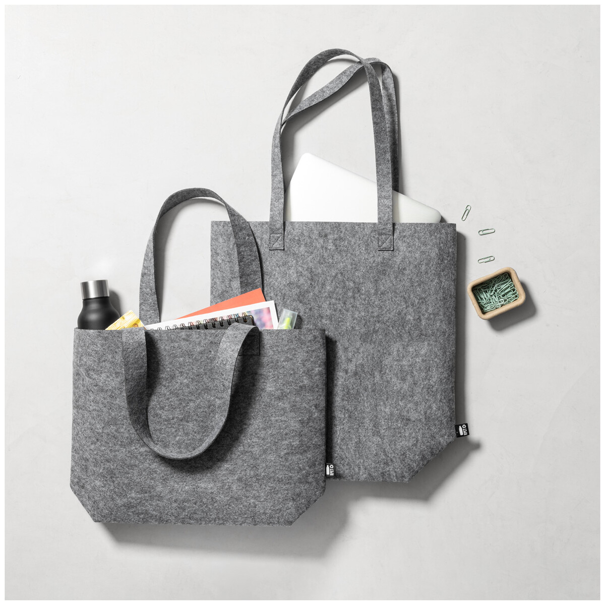 Nákupní taška z RPET plsti s dlouhými uchy a rozšířeným dnem. S výrazným štítkem RPET.