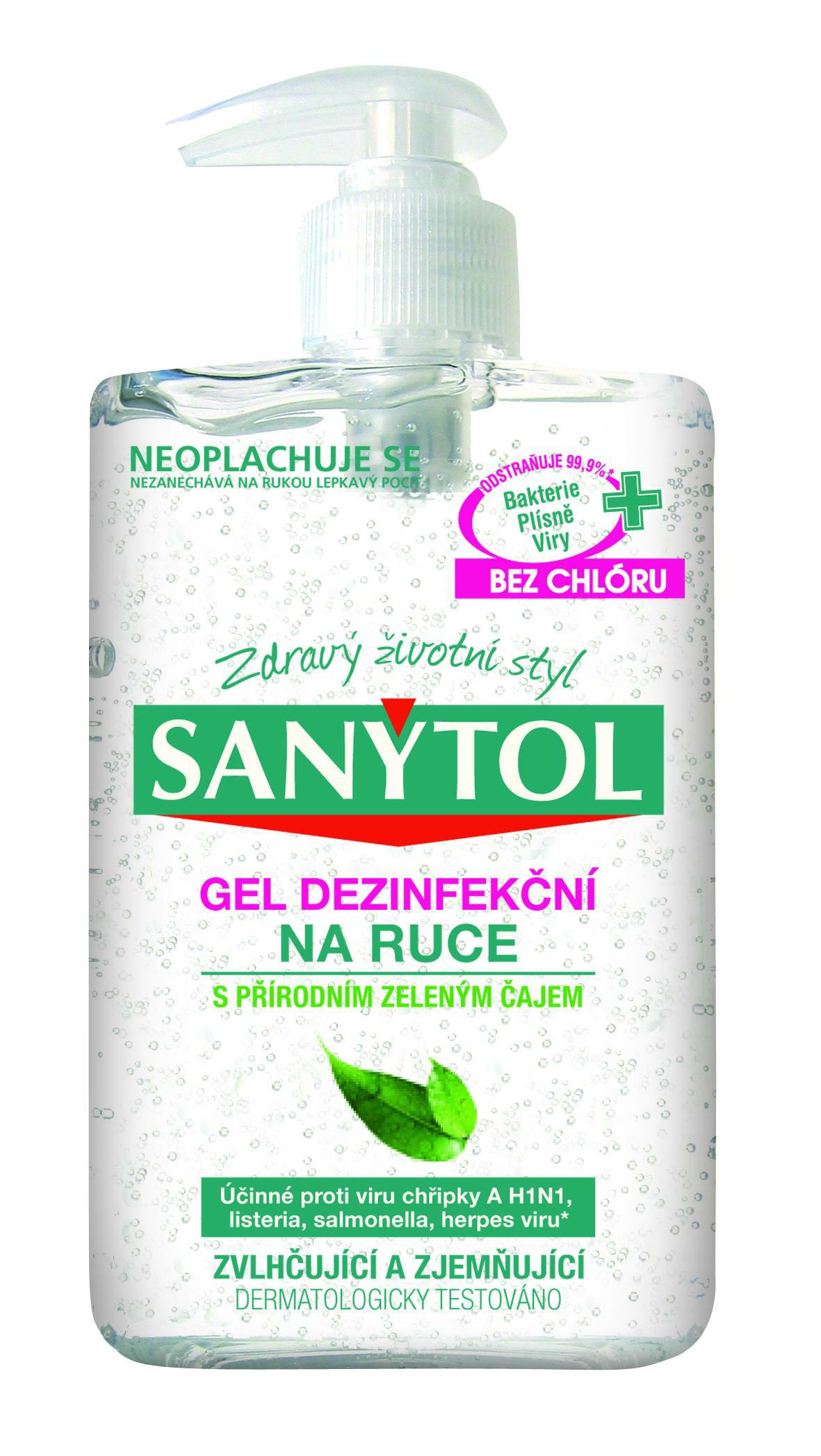 Dezinfekce na ruce Sanytol, gelová, 250 ml Dezinfekční gel Sanytol účinně čistí ruce bez použití vody a mýdla, eliminuje 99,9 % virů, bakterií a plísní a neutralizuje nepříjemné pachy.