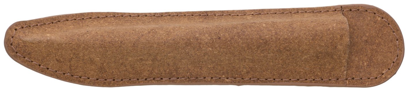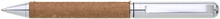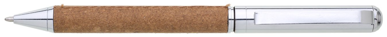 Otočná kovová propiska, úchopová část zdobena recyklovanou kůží, ze které je vyrobeno i pouzdro na propisku.