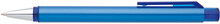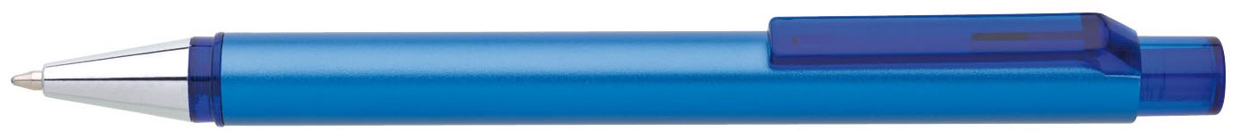 Elegantní hliníková propiska s chromovou špičkou a plastovým klipem a cvakátkem v barvě těla. Náplň velkoobsahová, modře píšící.