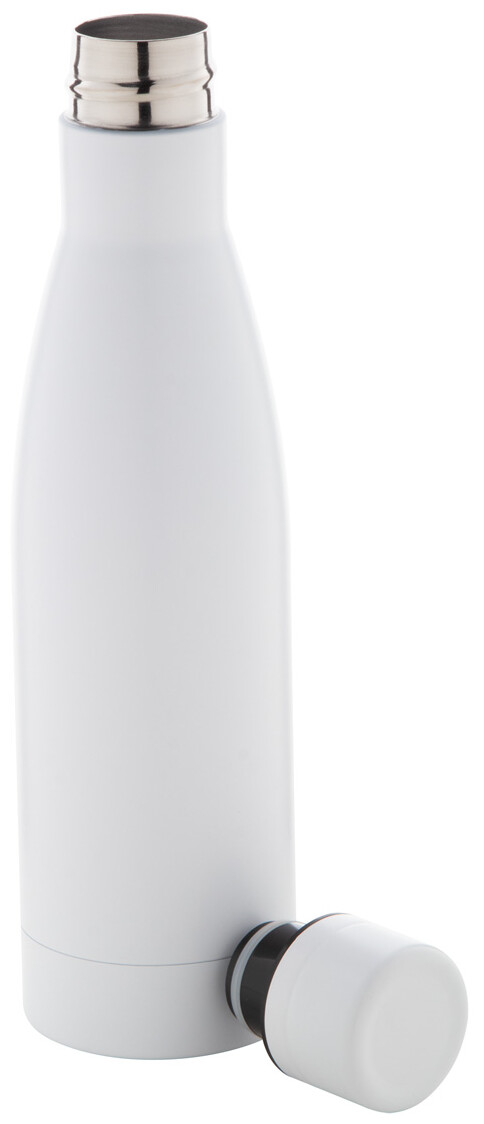 Dvoustěnná nerezová termoska izolovaná mědí, 500 ml. Měděná izolace udrží nápoje horké 12 a studené 24 hodin.