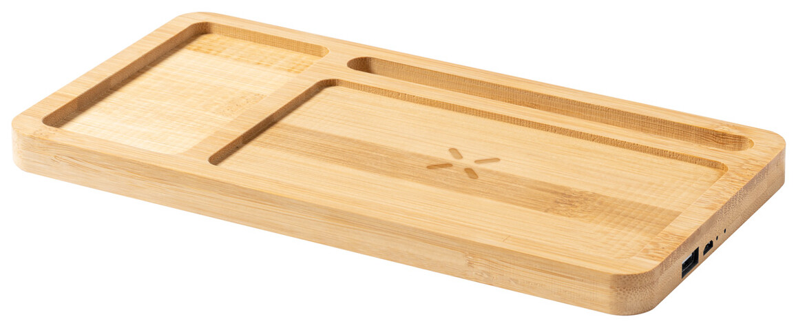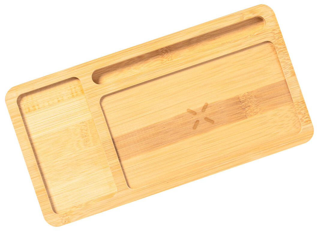 Bambusový stolní organizér a držák na mobilní telefon s vestavěnou bezdrátovou rychlonabíječkou (15W). S USB portem pro nabíjení 2 zařízení současně (1 bezdrátově a 1 přes kabel). Max. výstup: 2000 mA. Včetně USB nabíjecího kabelu.