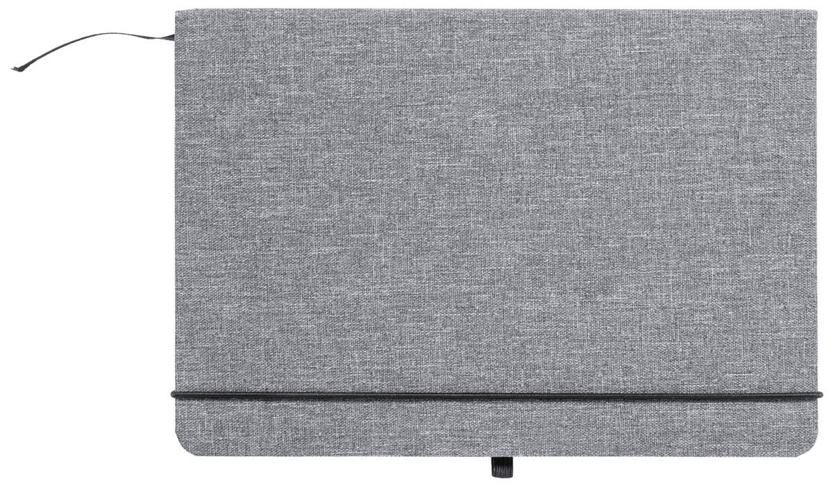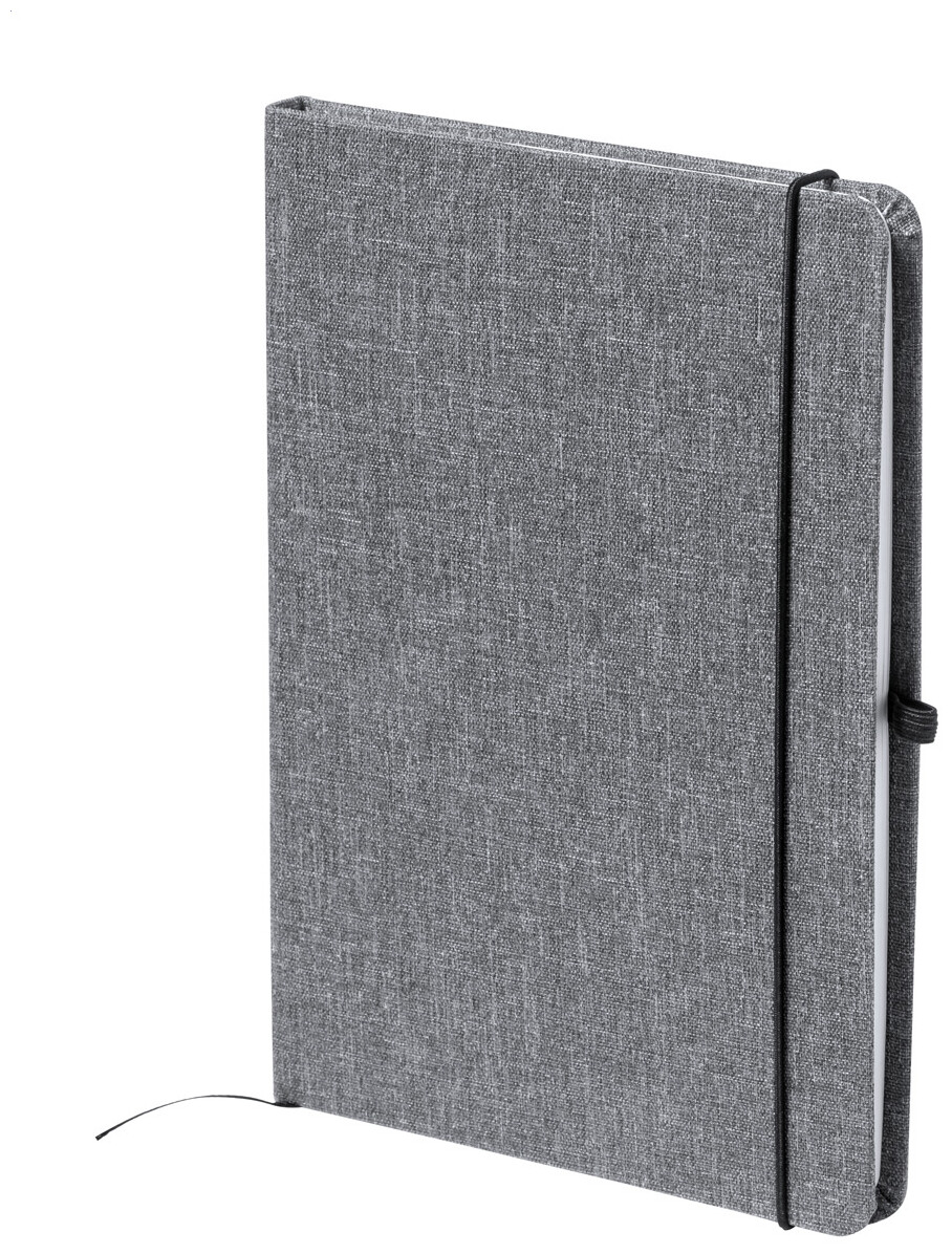 Zápisník potažený polyesterem 600D RPET se 100 linkovanými listy, záložkou a gumičkou. Velikost A5.