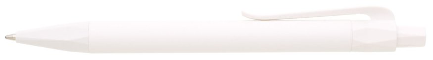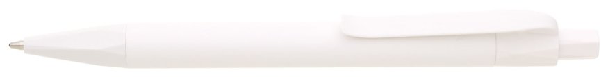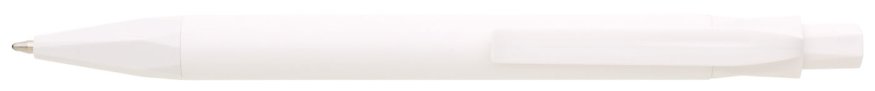 Plastová bílá propiska MARCI z kukuřičného PLA plastu (přírodní náhražka plastu vyrobená ze škrobu fermentované rostliny). Velkoobsahová náplň, modře píšící.