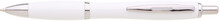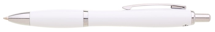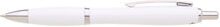 OSTA bílá plastová propiska s neprůsvitným tělem a chromovými doplňky. Náplň velkoobsahová, modře píšící.
