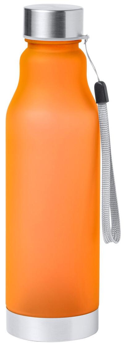 Láhev RPET s popruhem, nerezovým uzávěrem a dnem, 600 ml. Bez BPA. Nevhodné pro sycené nápoje.