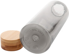 Láhev RPET s bambusovým víčkem, 500 ml. Bez BPA. Nevhodné pro sycené nápoje.