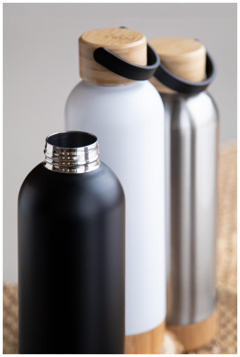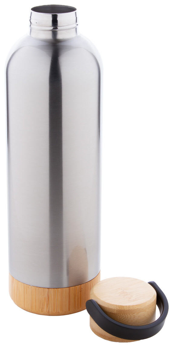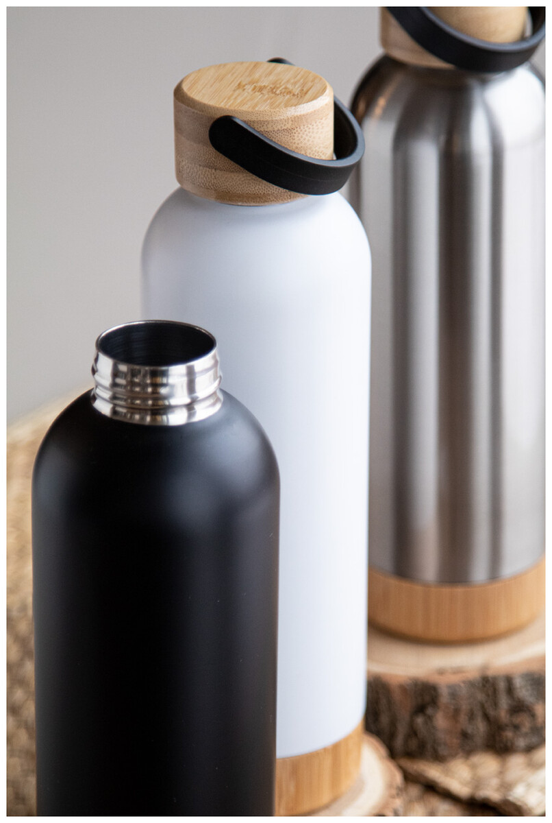 Dvoustěnná nerezová termoska s bambusovým víkem a dnem, 500 ml.