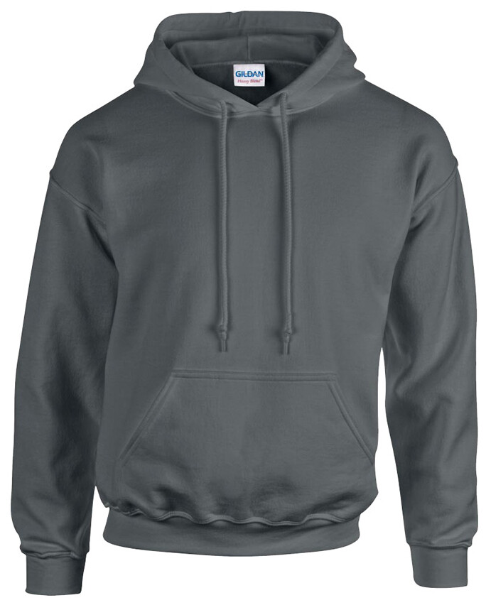 Mikina s kapucí z 50% bavlny a 50% polyesteru s přední kapsou. 271 g/m2 (bílá 257 g/m2). Produkt značky Gildan.