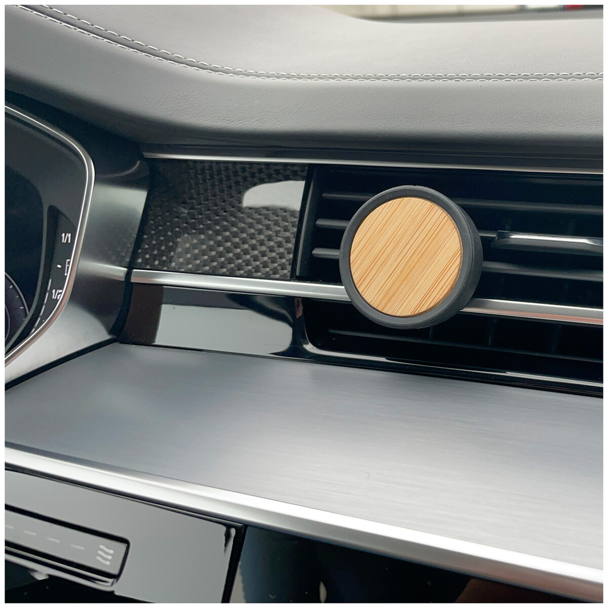 Silikonový osvěžovač vzduchu do auta s bambusovou přední částí a upevněním do větracího otvoru, citronová vůně.