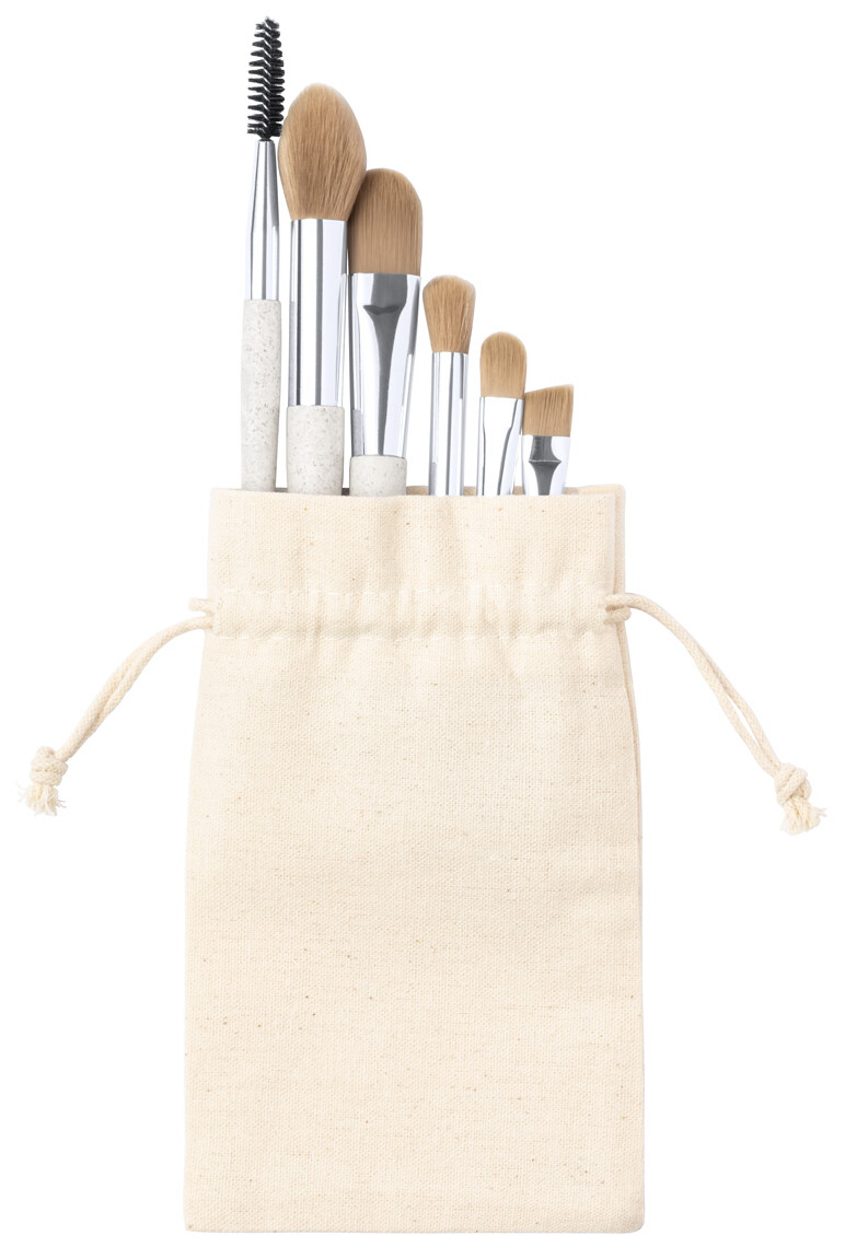 6dílná sada štětečků na make-up z ekologické pšeničné slámy a PP plastu, v bavlněném pytlíku se stahovací šňůrkou.