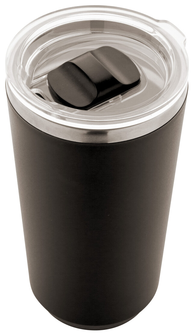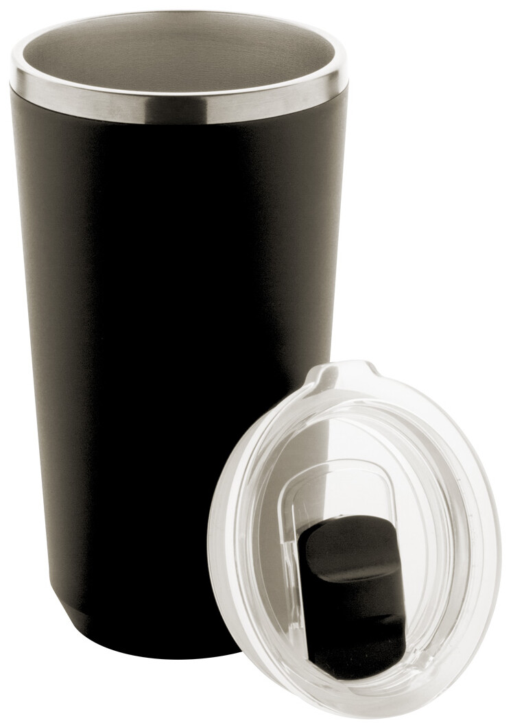 PP plastem pokrytý dvoustěnný, nerezový termo hrnek s víčkem na pití. 500 ml.