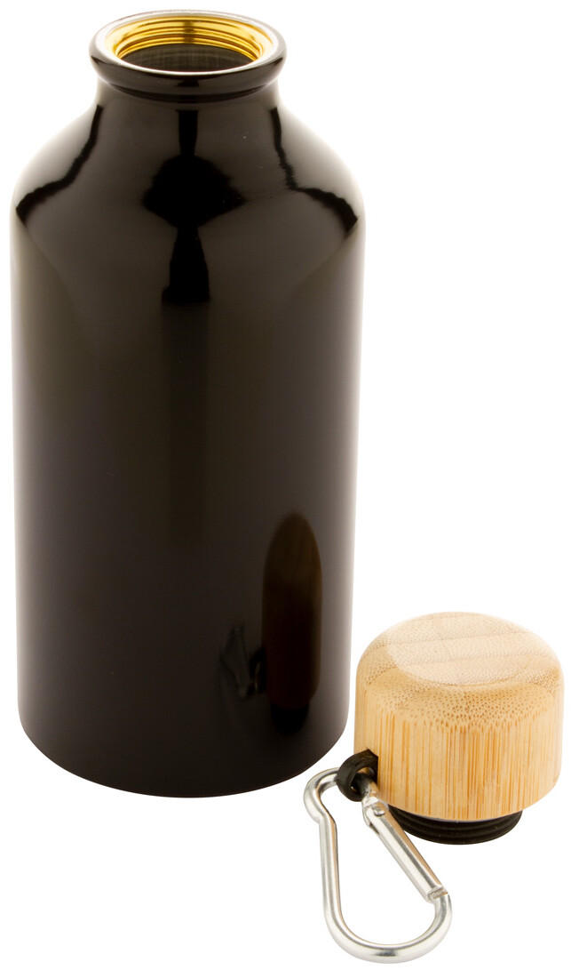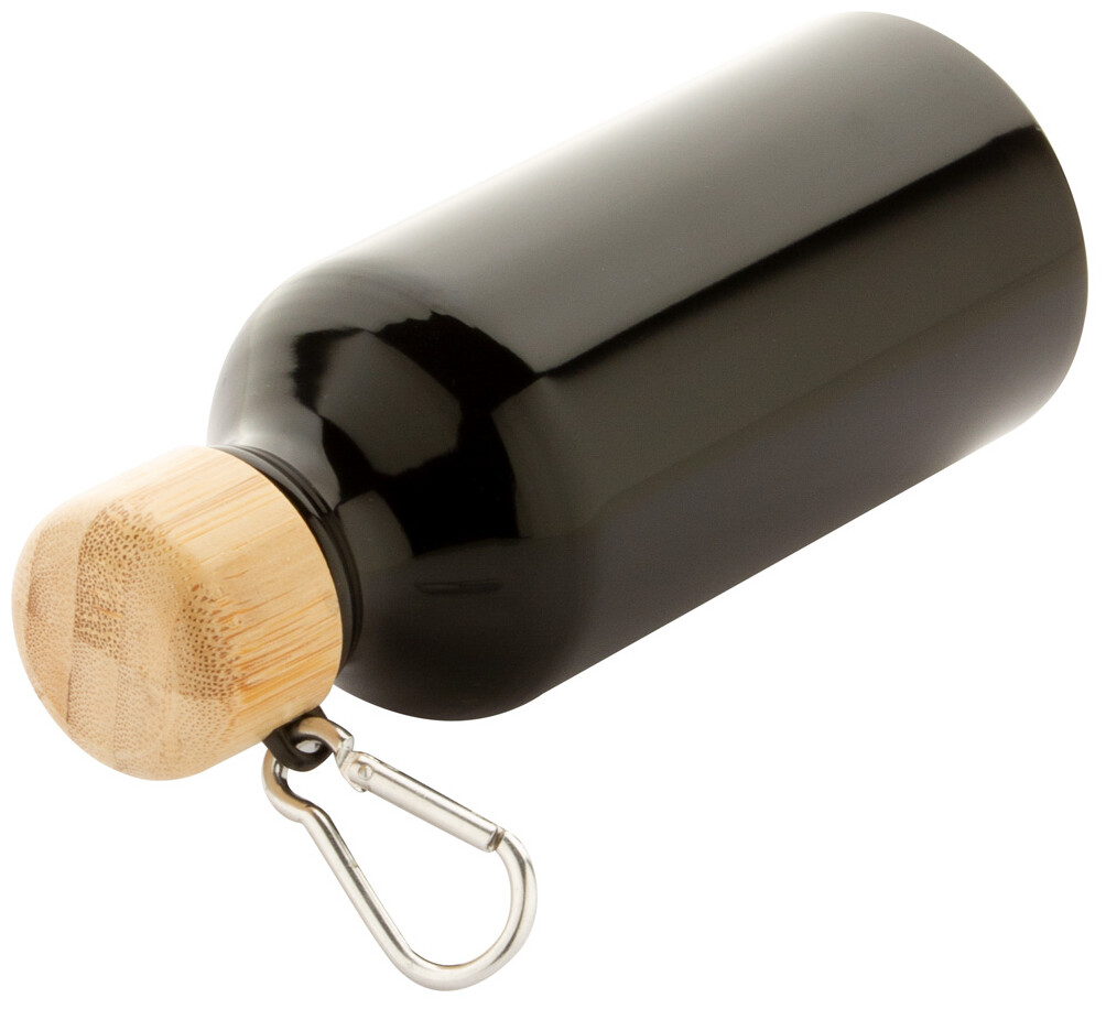 Hliníková láhev s bambusovým víčkem a karabinou, 400 ml.