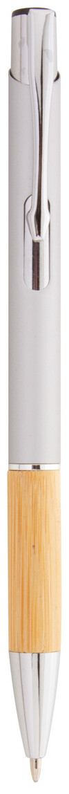 Hliníkové kuličkové pero s bambusovým úchopem, pogumovaným povrchem a modrou náplní. Se speciální vrstvou pro zrcadlové laserové gravírování.