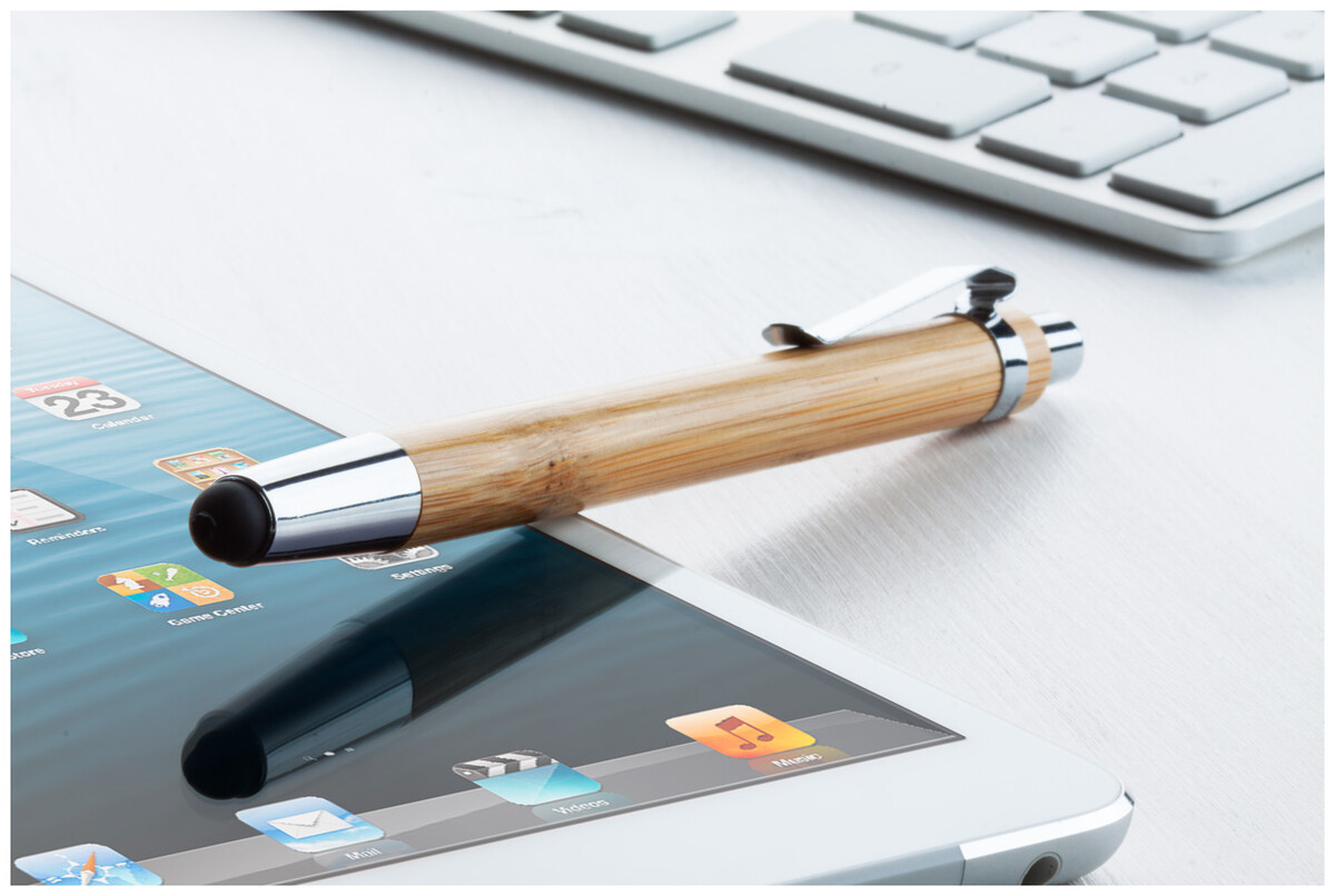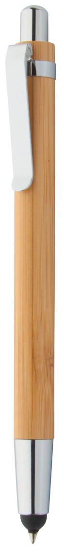 Bambusové kuličkové a dotykové pero s kovovým klipem a hrotem. S černou náplní.