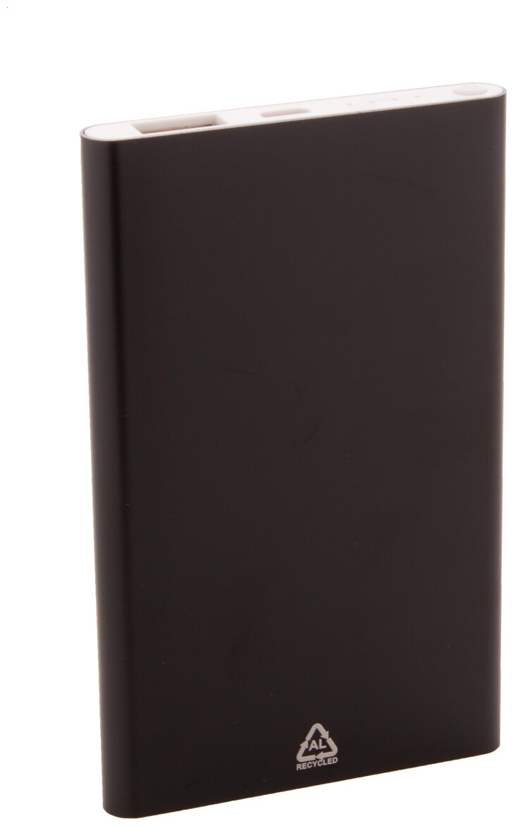 USB power banka v pouzdře z recyklovaného hliníku s 4000 mAh baterií. S 1 portem USB a 1 portem USB-C pro nabíječku. Vstupní port USB-C. Včetně USB nabíjecího kabelu.