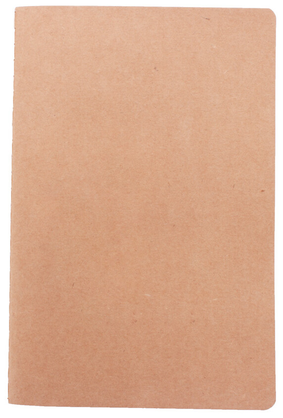 Blok A6 s deskami z recyklovaného papíru, šitý a 60 prázdnými listy z recyklovaného kraftového papíru.