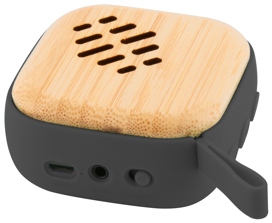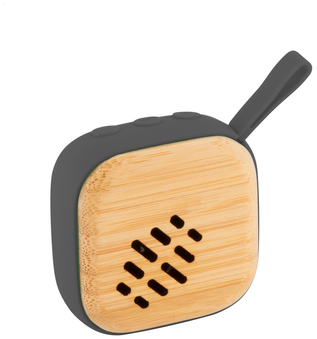 Bezdrátový reproduktor v pouzdře z bambusu a ABS plastu s funkcí hands-free volání a vestavěnou dobíjecí baterií. Včetně nabíjecího kabelu USB.