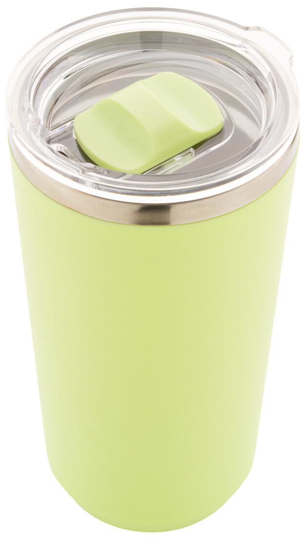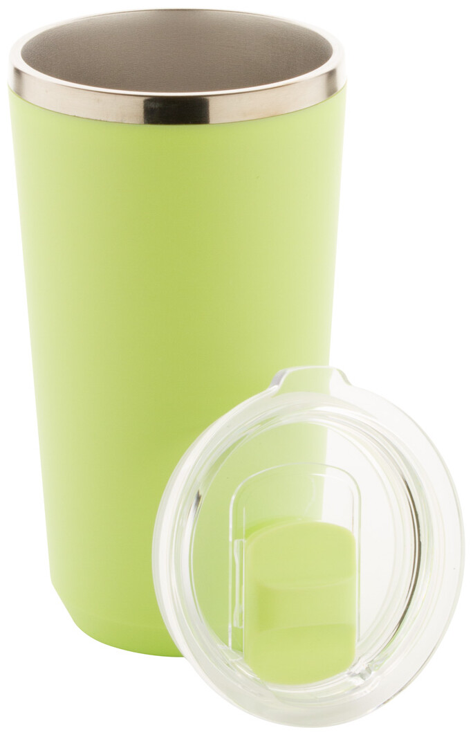 PP plastem pokrytý dvoustěnný, nerezový termo hrnek s víčkem na pití. 500 ml.
