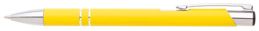 Hliníková propiska se stříbrnými doplňky a měkkým pogumovaným soft povrchem v žluté barvě. Modře píšící.