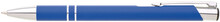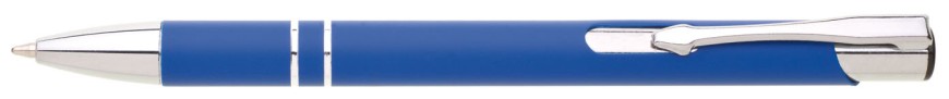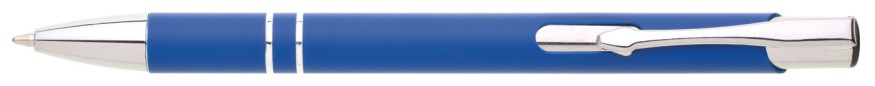 Hliníková propiska se stříbrnými doplňky a měkkým pogumovaným soft povrchem v modré barvě. Modře píšící.