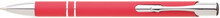 Hliníková propiska se stříbrnými doplňky a měkkým pogumovaným soft povrchem v červené barvě. Modře píšící.