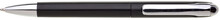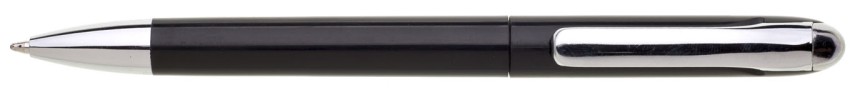 Černá otočná plastová propiska s chromovým klipem, vhodným pro laser. Náplň X20, modře píšící.