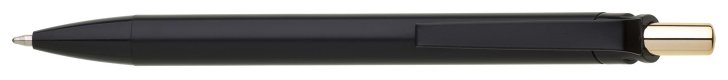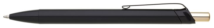 Kovová černá propiska s metalicky zlatým cvakátkem. Netradiční na této propisce je laser, který je zlatě lesklý. Vyniká zde zejména inverzní zpracování loga. Náplň velkoobsahová, modře píšící.