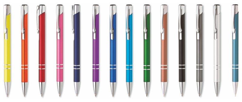 ALBA je velmi oblíbená hliníková reklamní tužka. Matné petrolové tělo se dvěma stříbrnými proužky a chromovými doplňky.