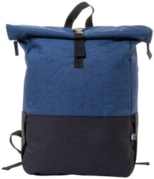 Dvoubarevný rolovací batoh z RPET se zapínáním na přezku, hlavní přihrádka na zip, polstrovaná přihrádka na notebook (15") a tablet (10"), boční kapsy, polstrovaná záda a ramenní popruhy. 300D RPET polyester s výrazným štítkem RPET.