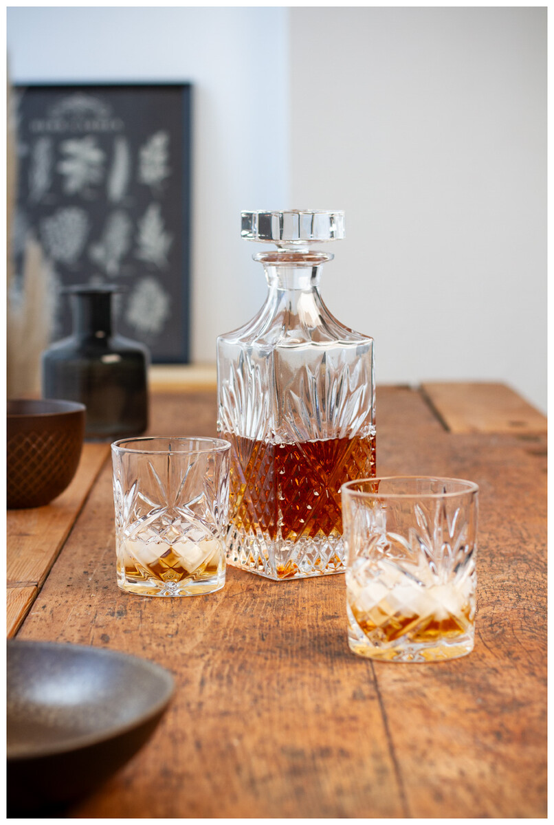 Luxusní whisky set v bambusové krabičce se skleněnou karafou (750 ml) a dvěma skleničkami na whisky (280 ml).