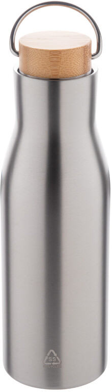 Dvoustěnná nerezová termoska z recyklované nerezové oceli s bambusovým víkem, 500 ml.