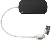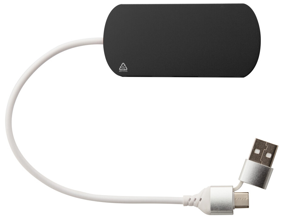 USB hub z recyklovaného hliníku a recyklovaného ABS se 2 USB a 1 USB-C portem, USB 2.0. Včetně kabelu s připojením USB a USB-C.