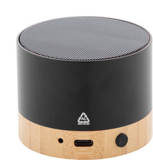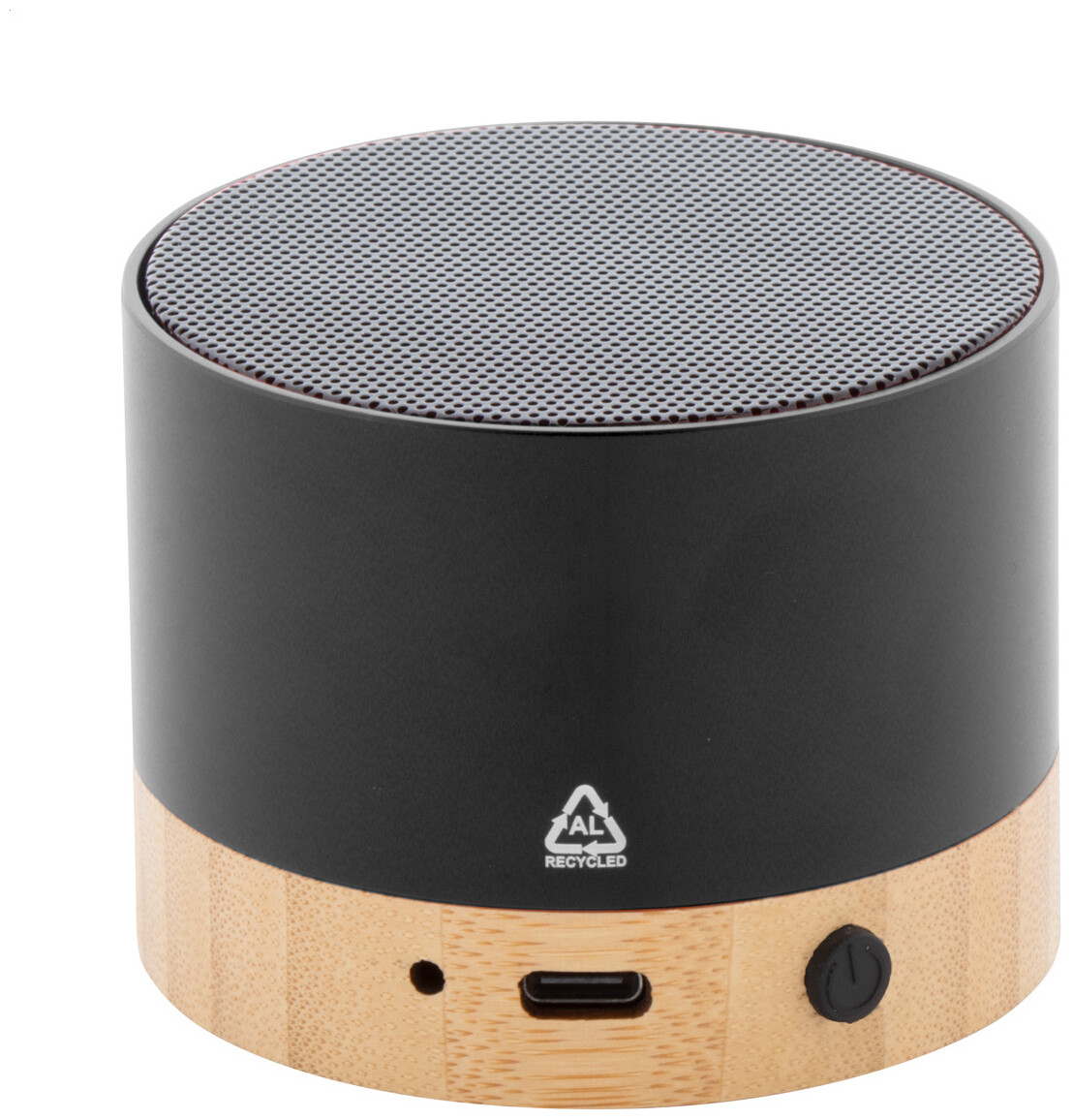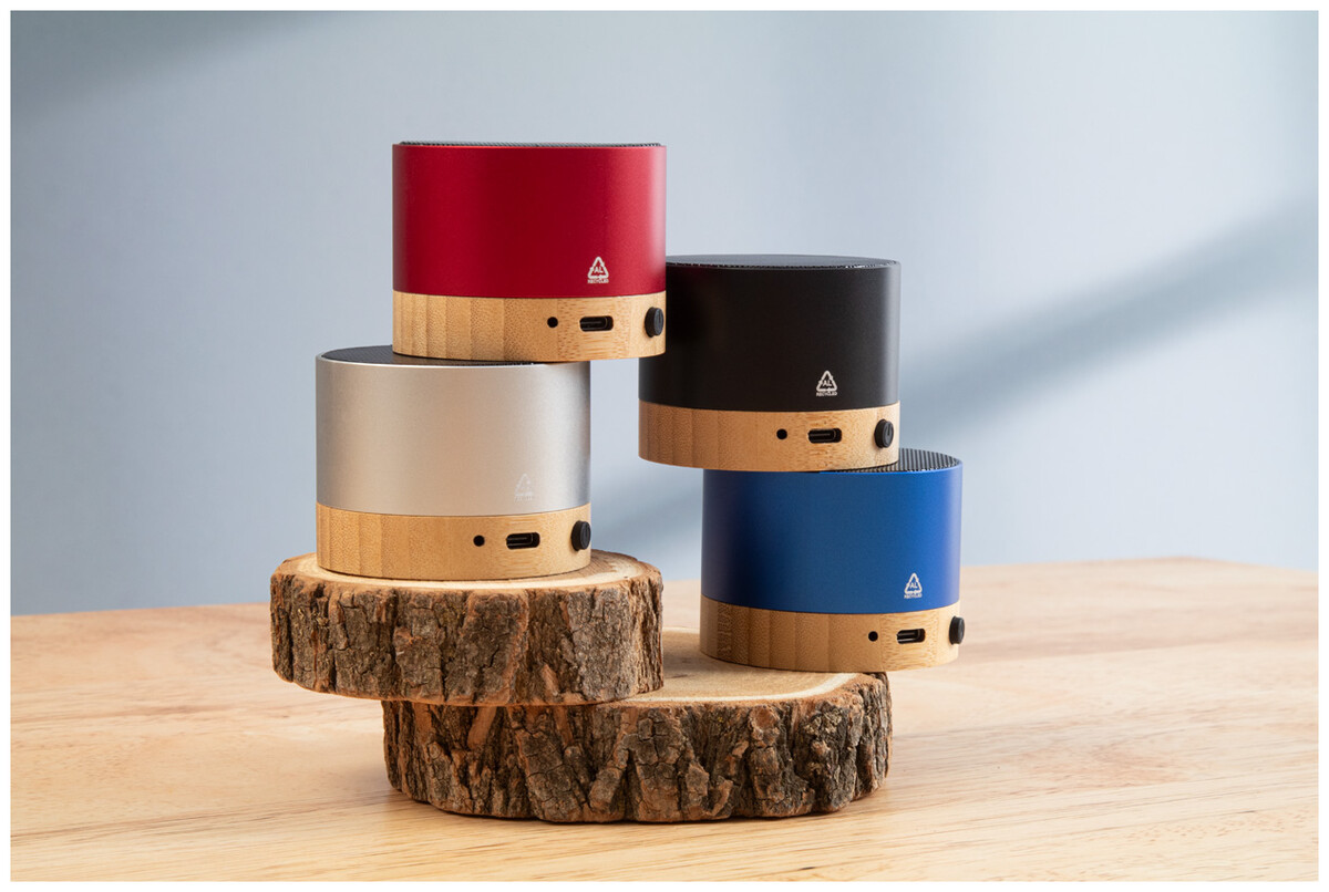 Bezdrátový reproduktor z recyklovaného hliníku s bambusovou základnou. S funkcí hands-free volání a vestavěnou dobíjecí baterií. Včetně nabíjecího kabelu USB.