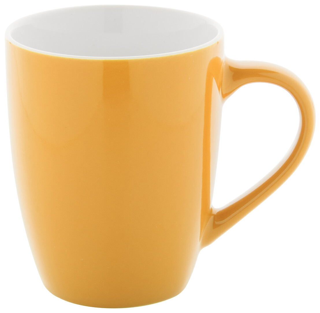 Vysoce kvalitní barevný keramický hrnek s bílým vnitřkem, 340 ml. V kraftové papírové krabici.