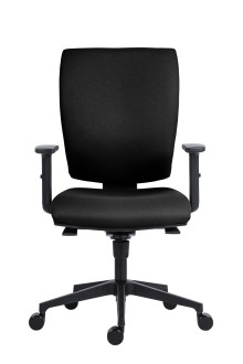 Cena je včetně područek AR 11, židle s čalouněným sedákem a opěrákem, výškové nastavení opěráku mechanismem up-down, jednopákový synchronní mechanismus SYN-K se čtyřnásobnou aretací a automatickým nastavením síly protiváhy, nylonová černá báze, kolečka pr. 60 mm univerzálně použitelná pro všechny povrchy, nosnost 150 kg, český výrobek, záruka 36 měsíců