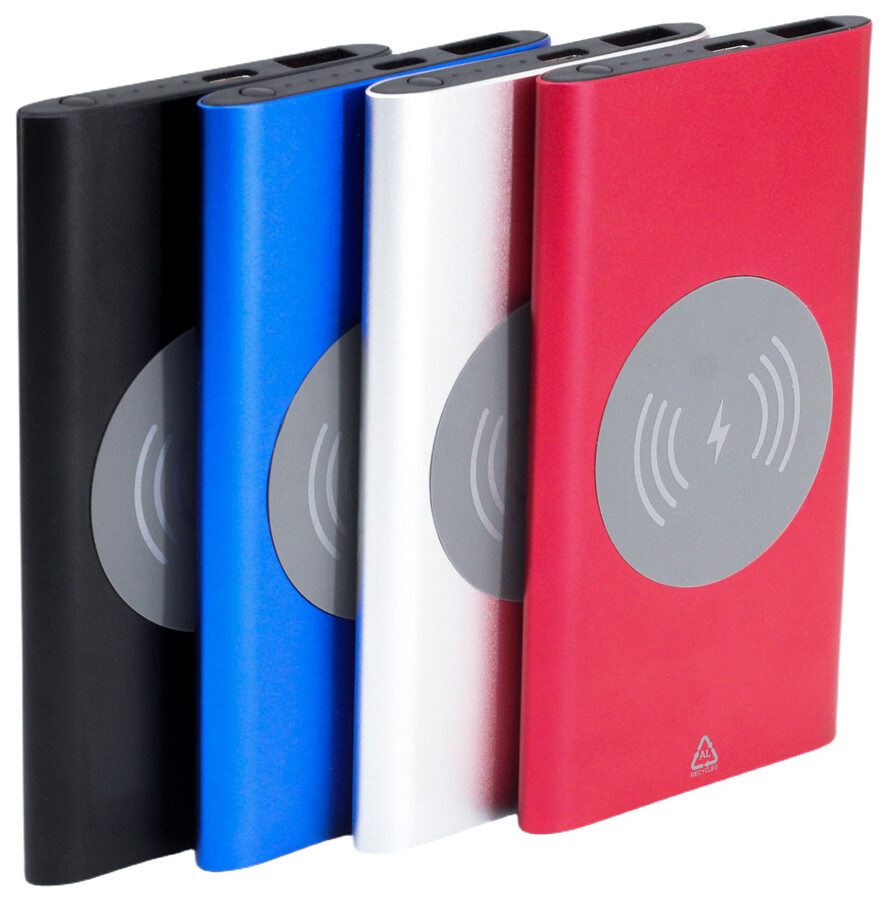 USB power banka z recyklovaného hliníku s vestavěnou bezdrátovou rychlonabíječkou (15W) a 4000 mAh baterií. S 1 portem USB a 1 portem USB-C pro nabíječku. Vstupní port USB-C. Včetně USB nabíjecího kabelu.