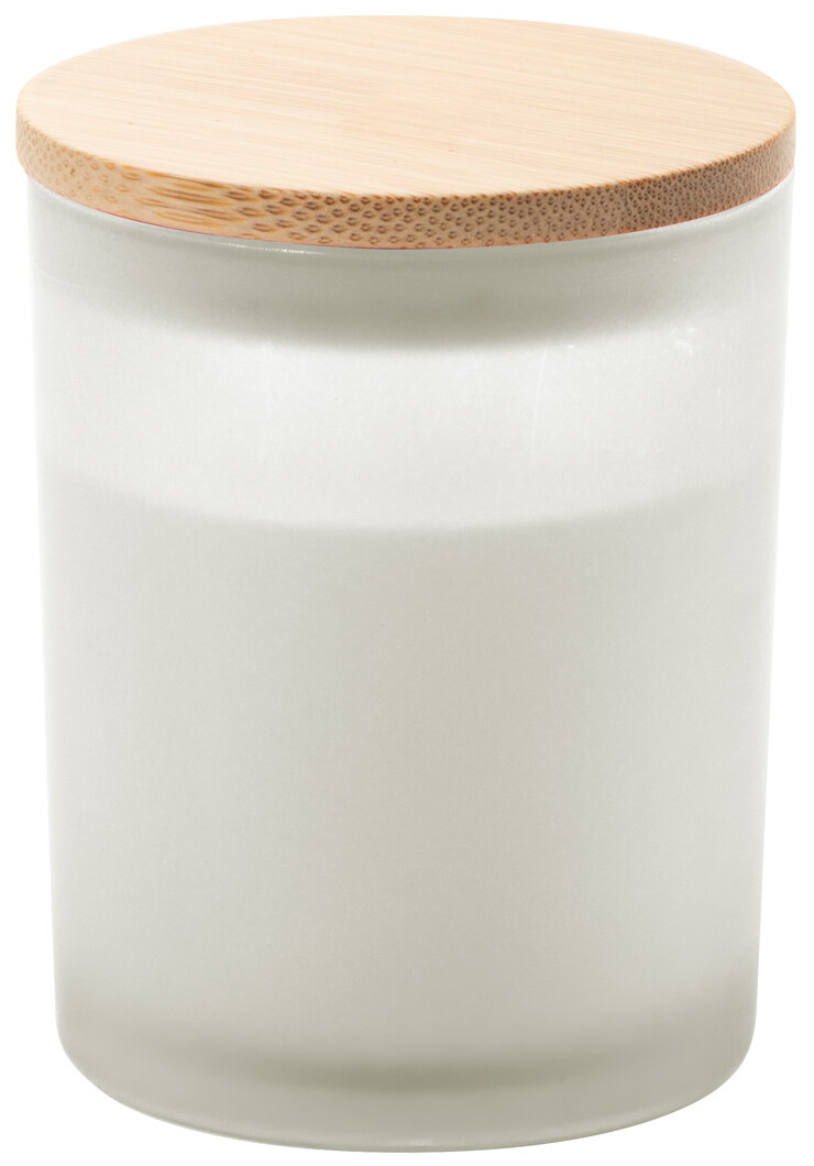 Vosková svíčka na rostlinné bázi v matném skleněném držáku s bambusovým víčkem. S 200 gramy vosku. V kraftové papírové krabici.
