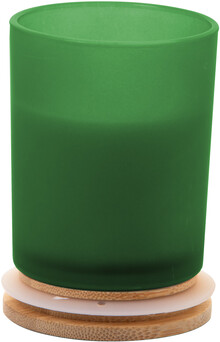 Vosková svíčka na rostlinné bázi v matném skleněném držáku s bambusovým víčkem. S 200 gramy vosku. V kraftové papírové krabici.