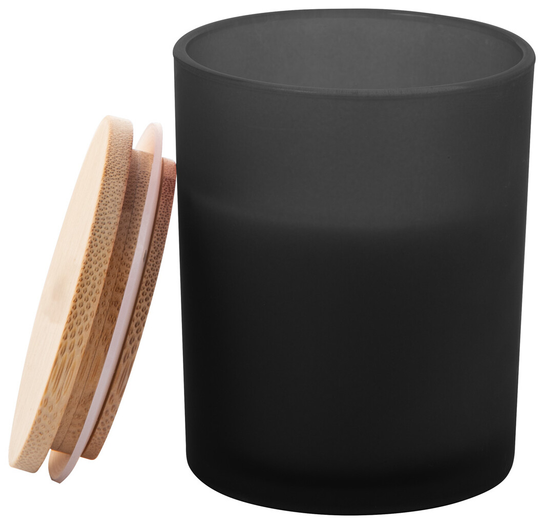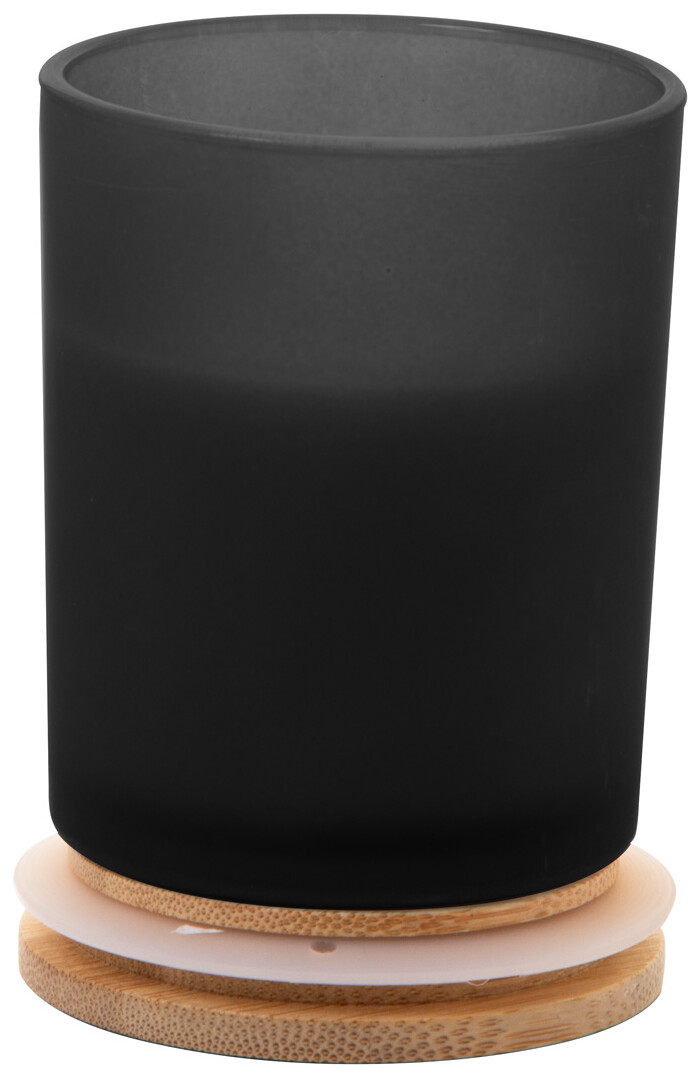 Vosková svíčka na rostlinné bázi v matném skleněném držáku s bambusovým víčkem. S 200 gramy vosku. V kraftové papírové krabici.
