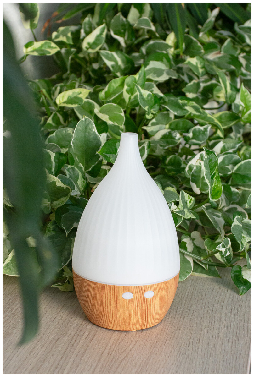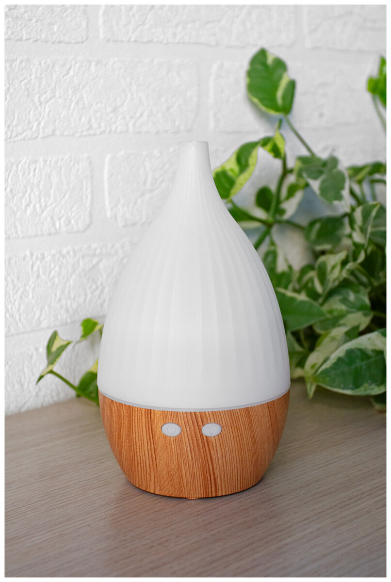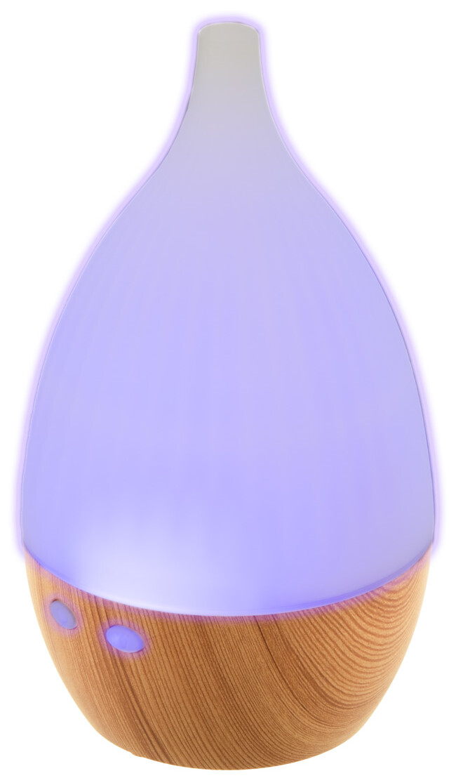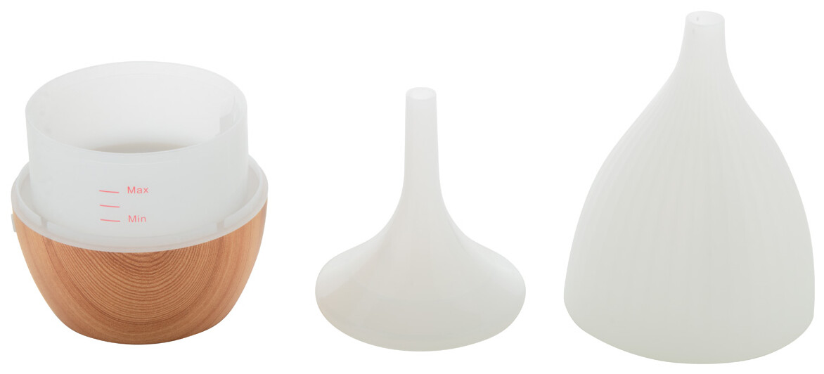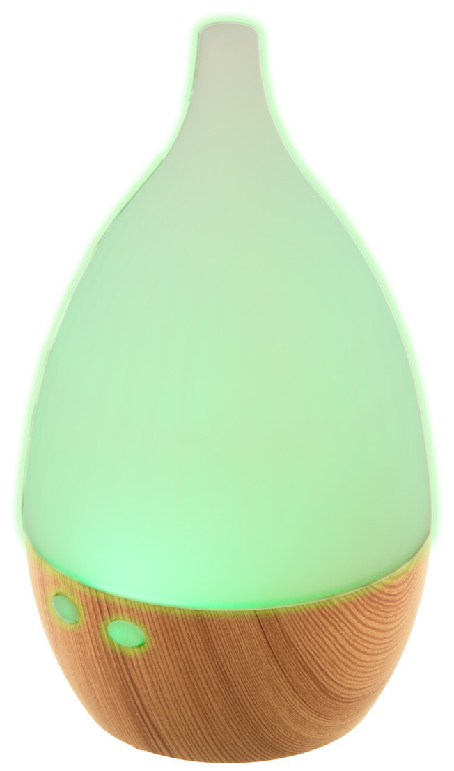 Stolní zvlhčovač z recyklovaného PP plastu s dřevěným vzorem a vícebarevným LED světlem. Včetně USB nabíjecího kabelu. Objem nádržky: 120 ml.