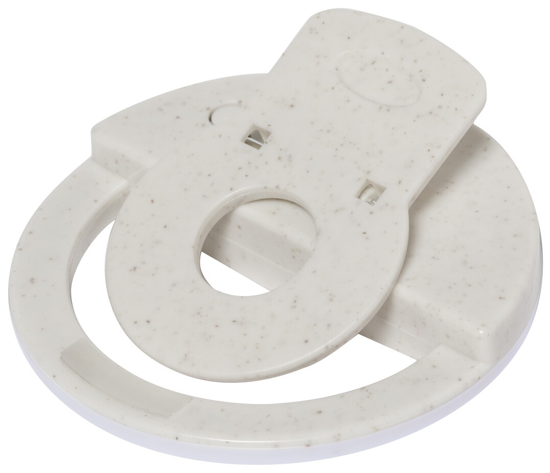 Ekologické plastové selfie kruhové světlo z pšeničné slámy s 36 LED pro mobilní telefony. Se 3 nastavitelnými úrovněmi jasu a vestavěnou dobíjecí baterií. Včetně USB nabíjecího kabelu.