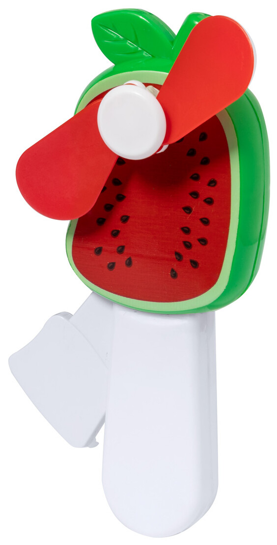 Ruční větráček s ozdobou ve tvaru ovoce, ABS plast.