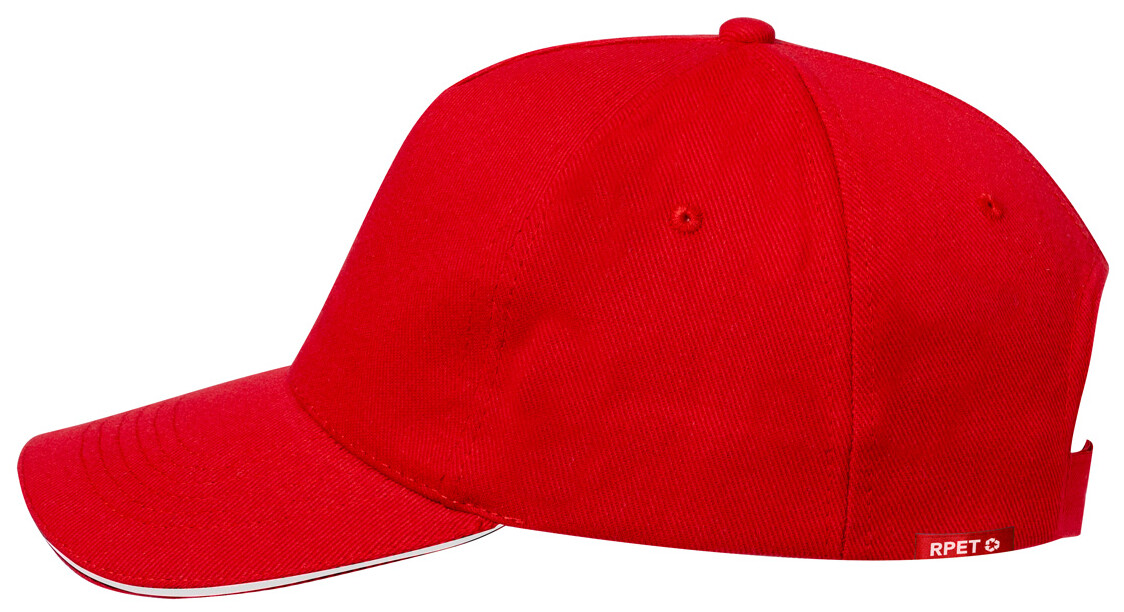 RPET polyesterová baseballová čepice s 5 panely a zapínáním na suchý zip.
