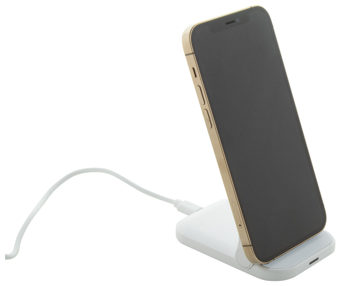 Skládací, nastavitelný stojánek na mobil z recyklovaného ABS plastu, se zabudovanou bezdrátovou rychlonabíječkou (15W). Včetně USB nabíjecího kabelu.