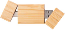 OTG USB flash disk v bambusovém pouzdře s pamětí 4/8/16/32 GB. S konektory USB a USB-C. V kraftovém papírovém sáčku. USB 2.0.